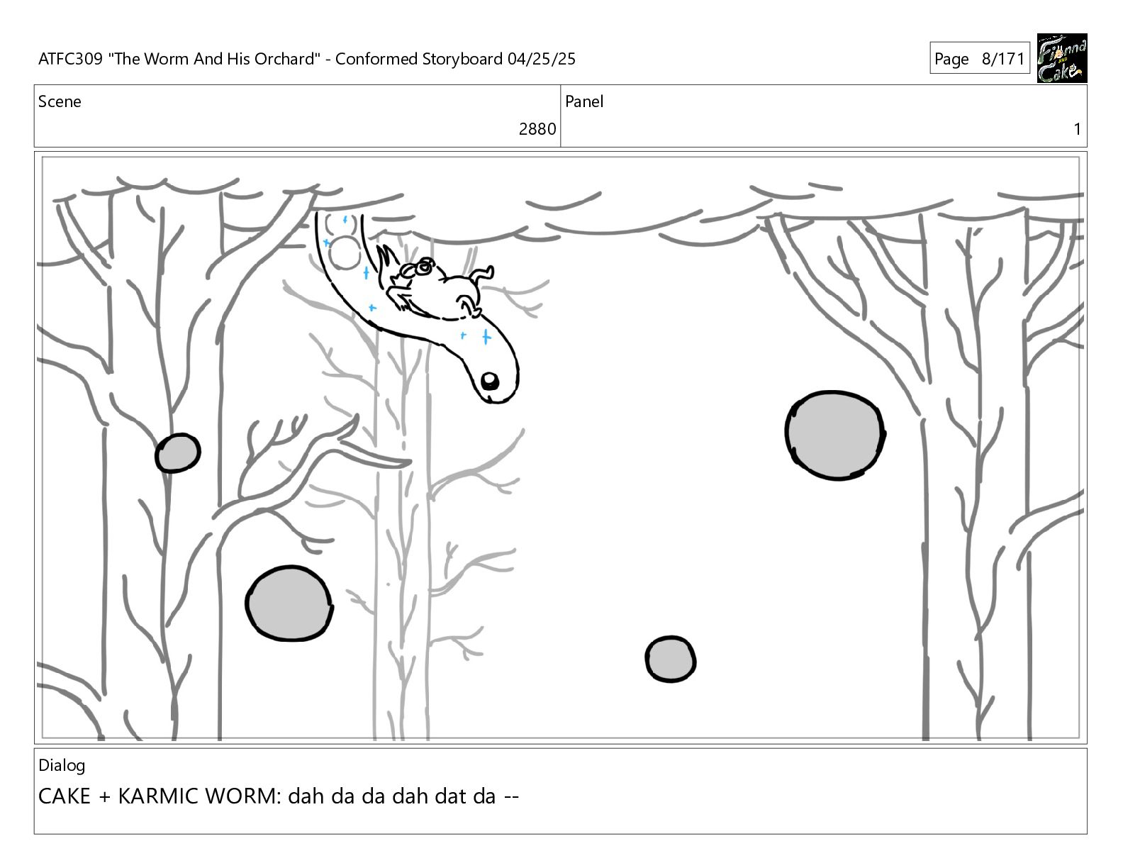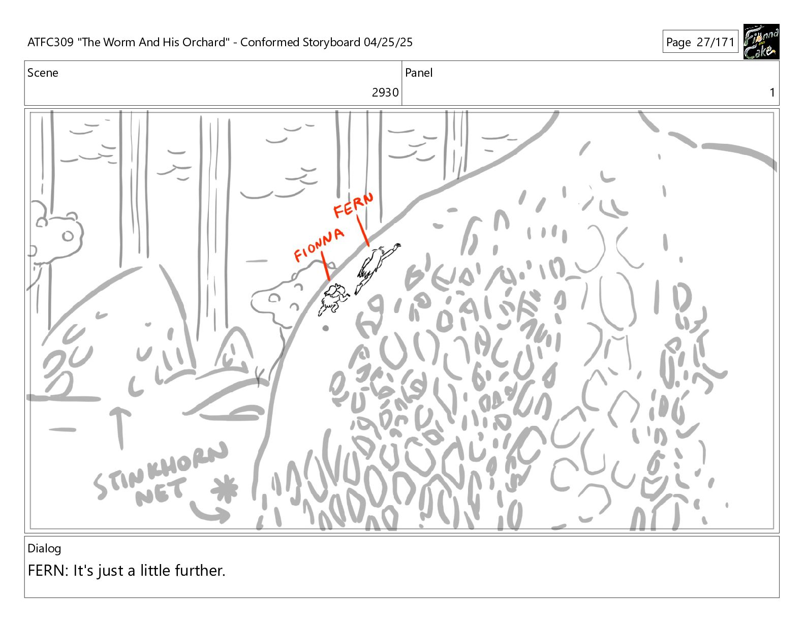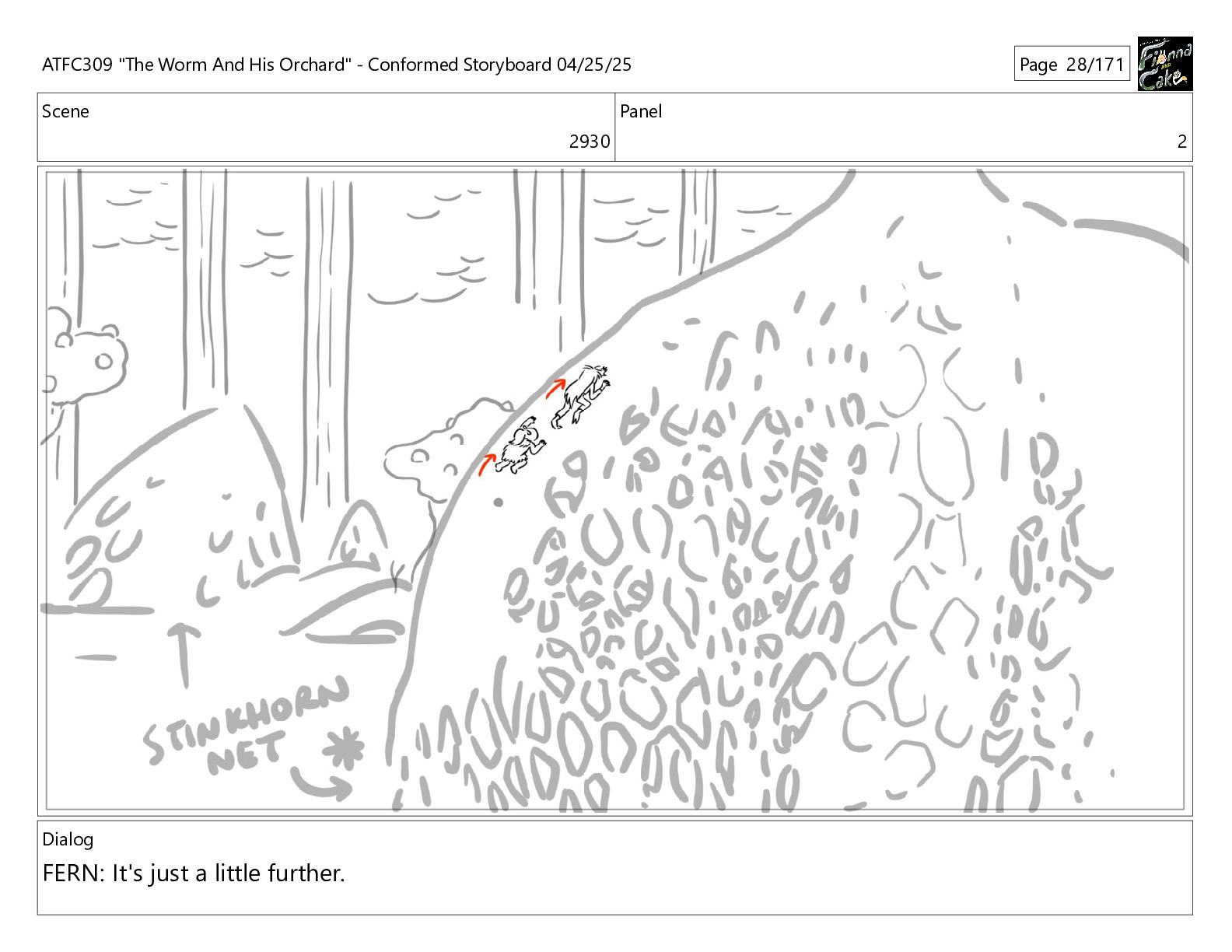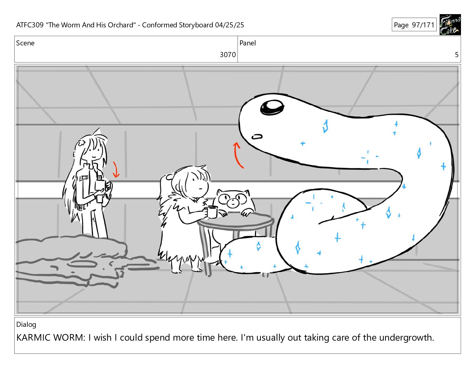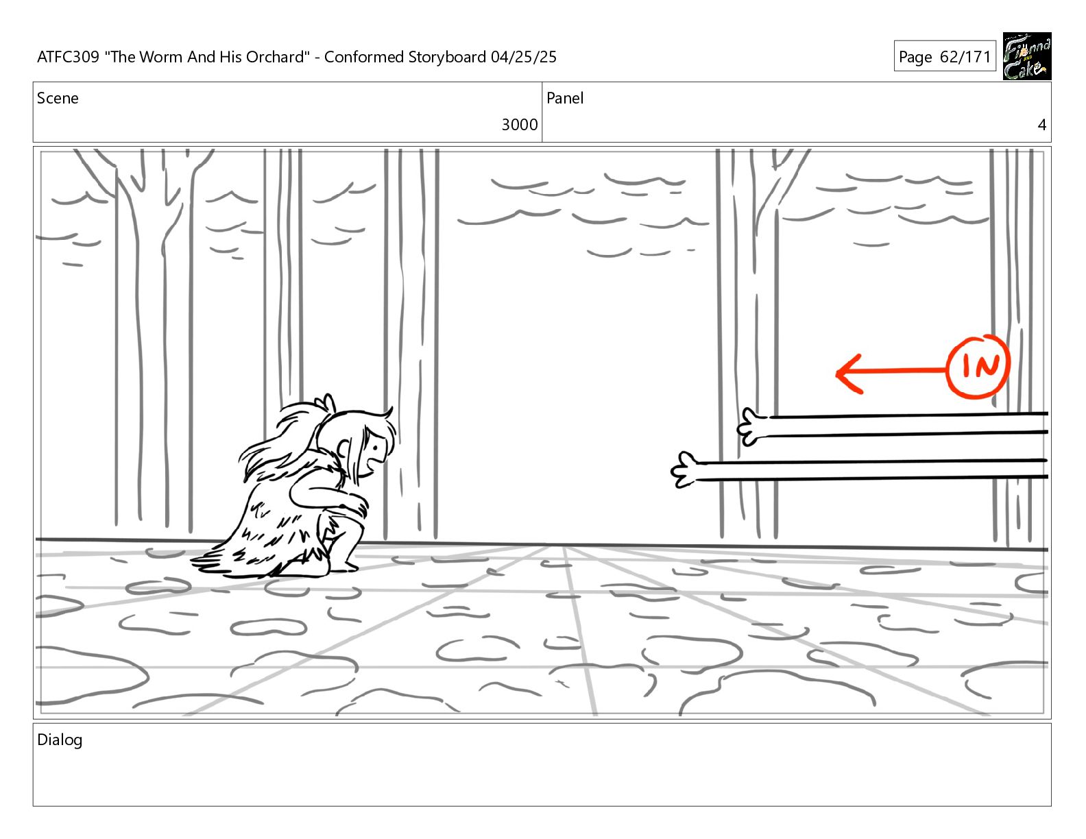 could spend more time here. I'm usually out taking care of the undergrowth. ATFC309 "The Worm And His Orchard" - Conformed Storyboard 04/25/25 Page 97/171