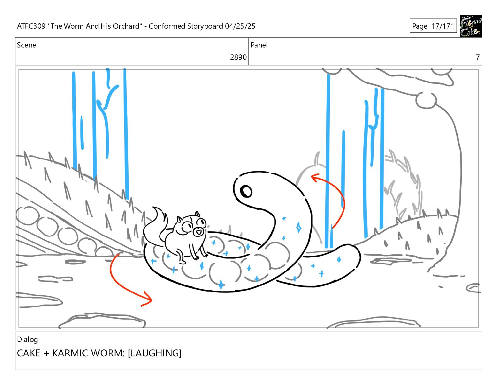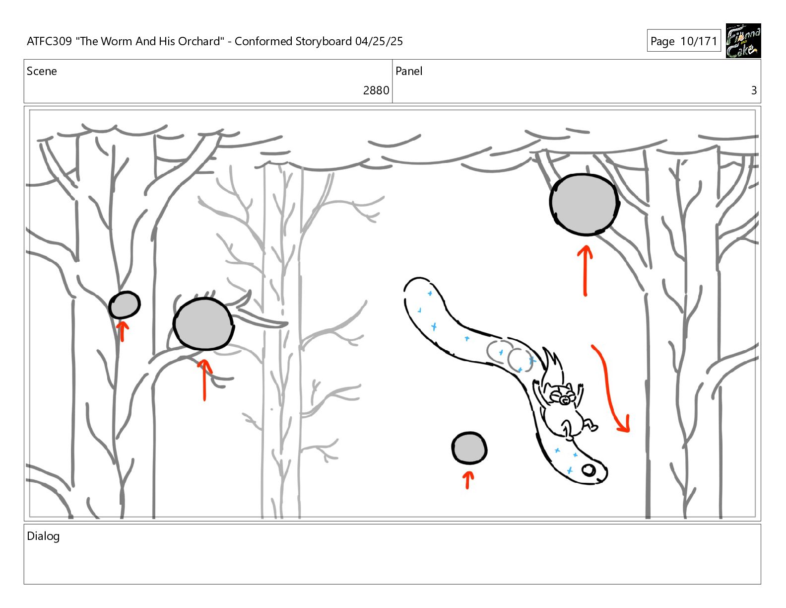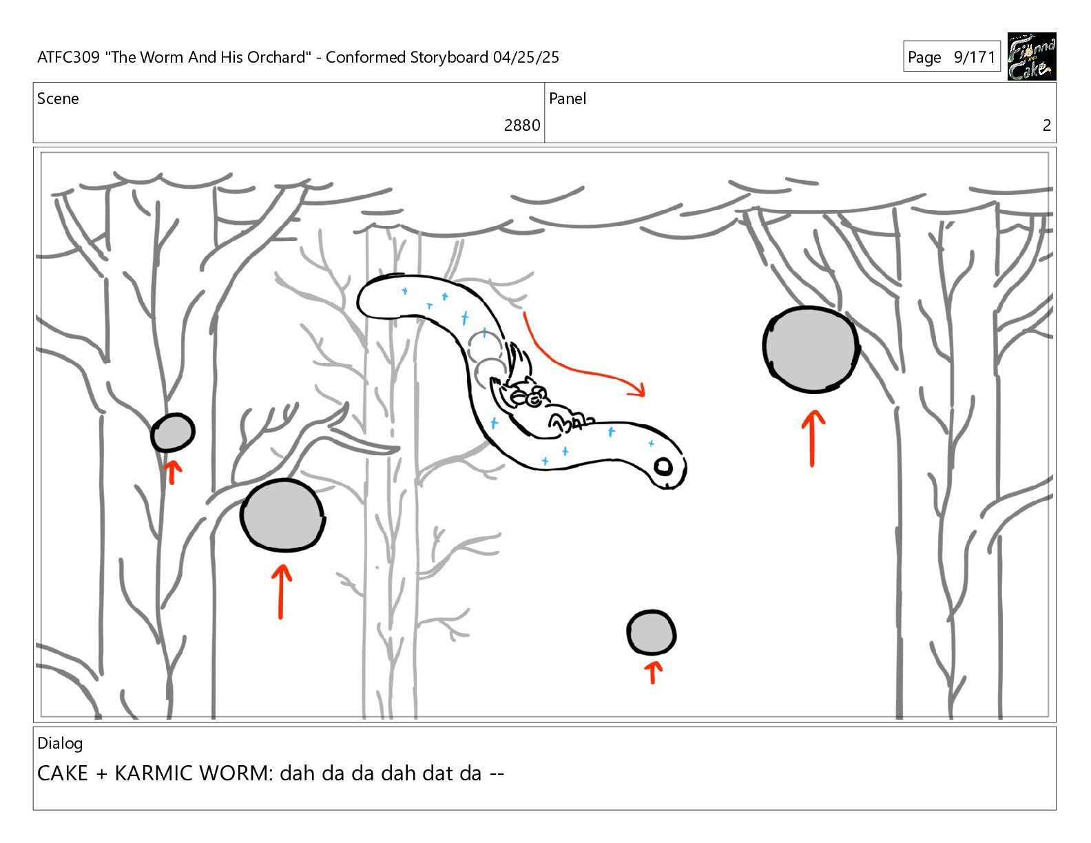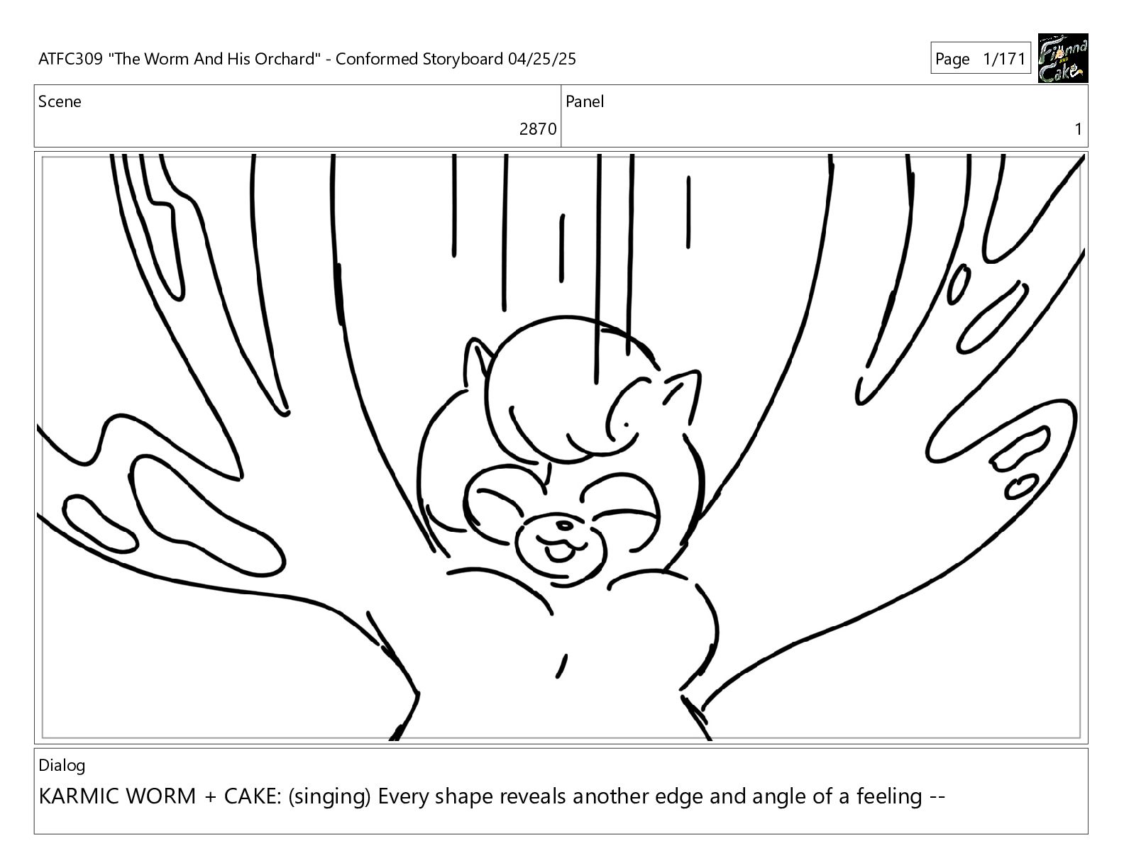 could spend more time here. I'm usually out taking care of the undergrowth. ATFC309 "The Worm And His Orchard" - Conformed Storyboard 04/25/25 Page 97/171