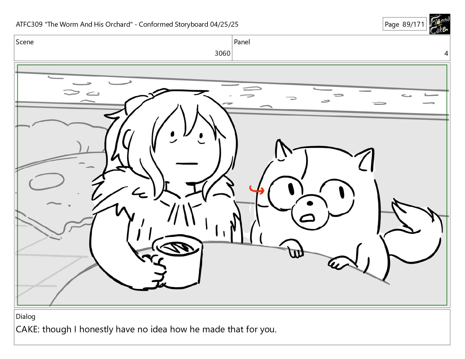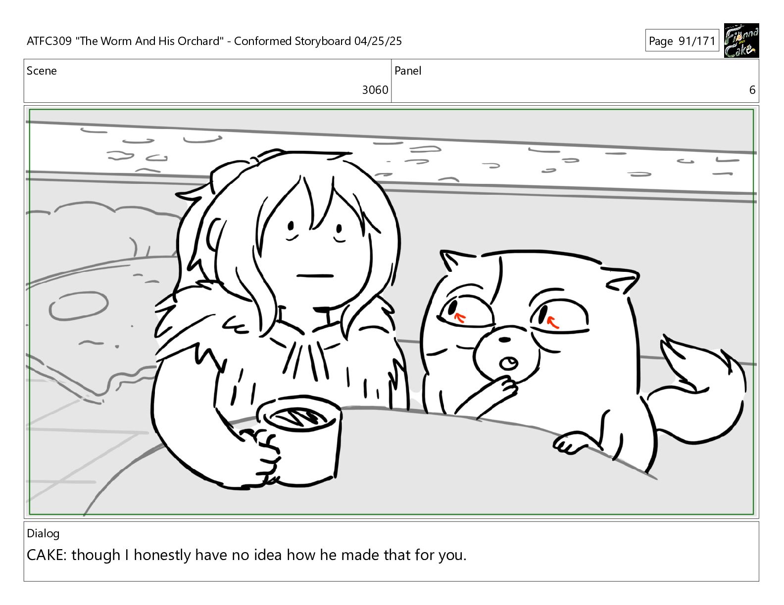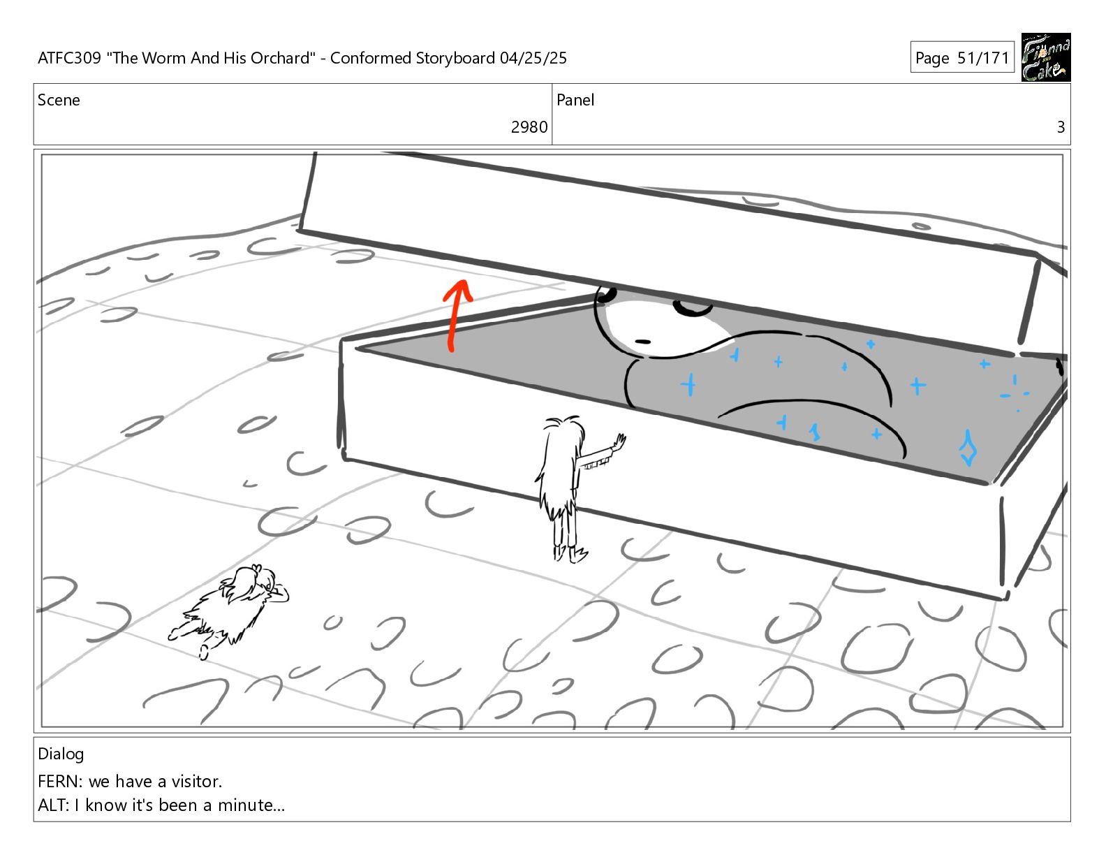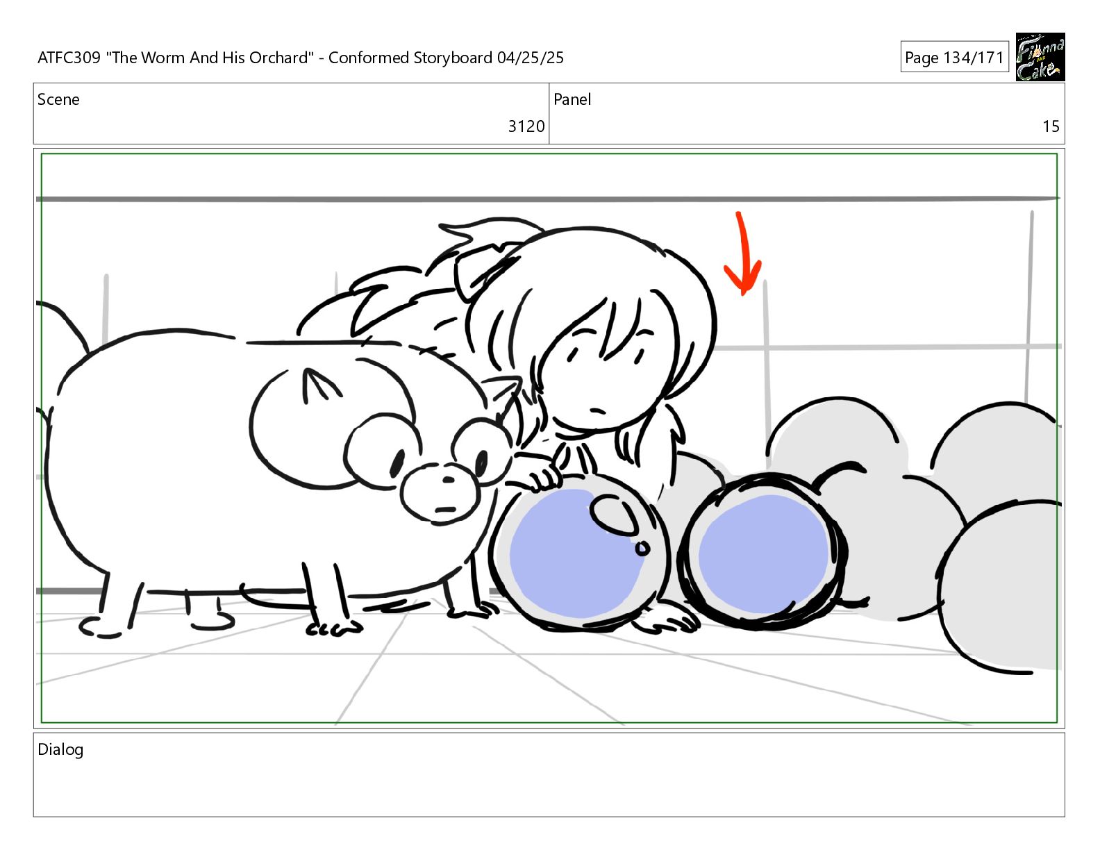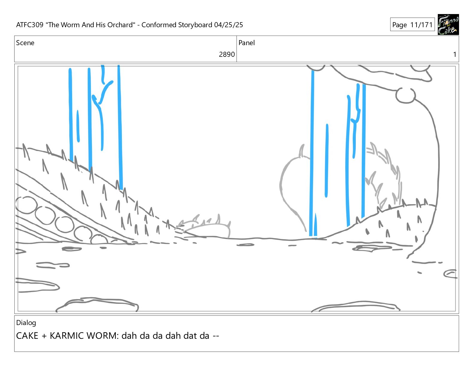 could spend more time here. I'm usually out taking care of the undergrowth. ATFC309 "The Worm And His Orchard" - Conformed Storyboard 04/25/25 Page 97/171