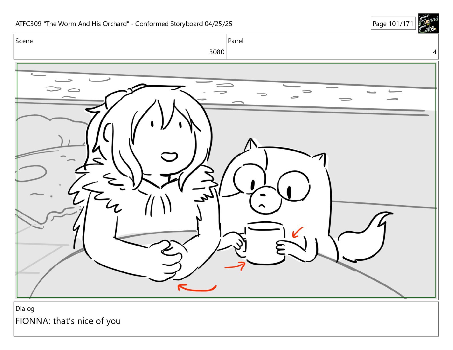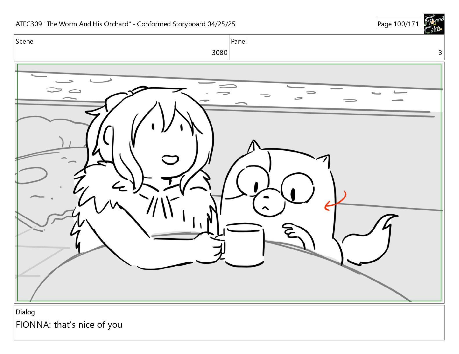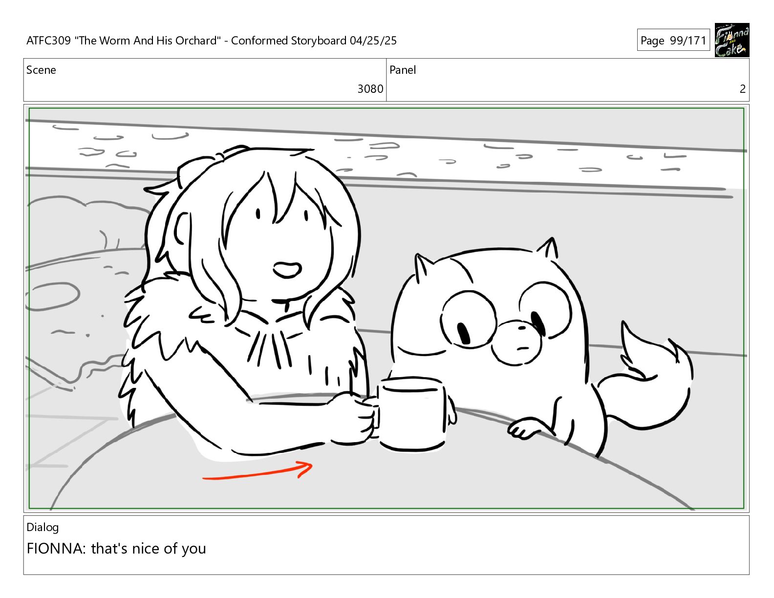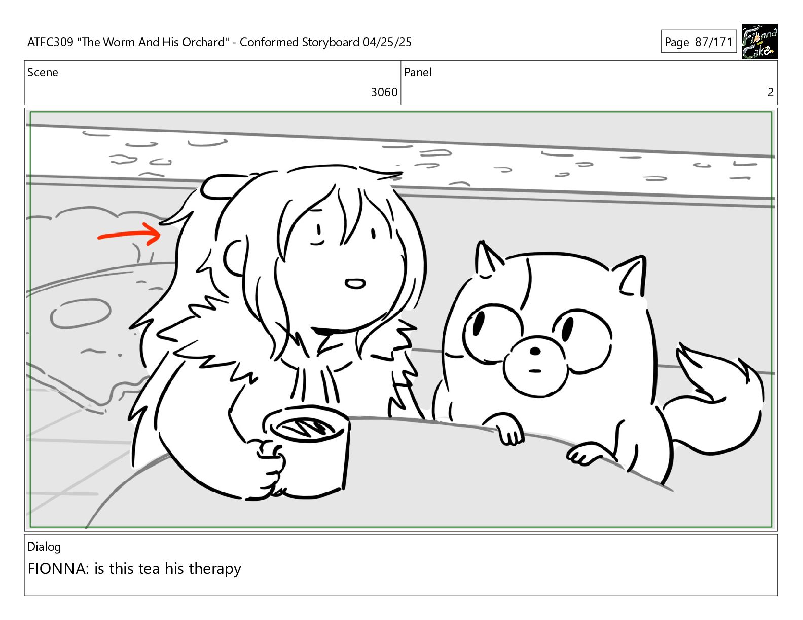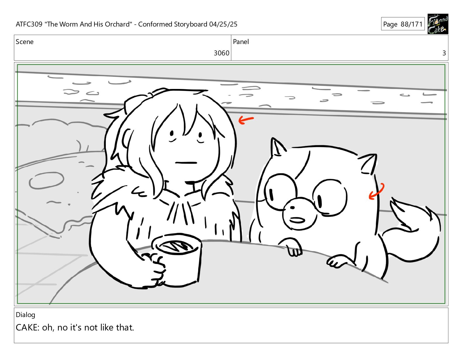 could spend more time here. I'm usually out taking care of the undergrowth. ATFC309 "The Worm And His Orchard" - Conformed Storyboard 04/25/25 Page 97/171