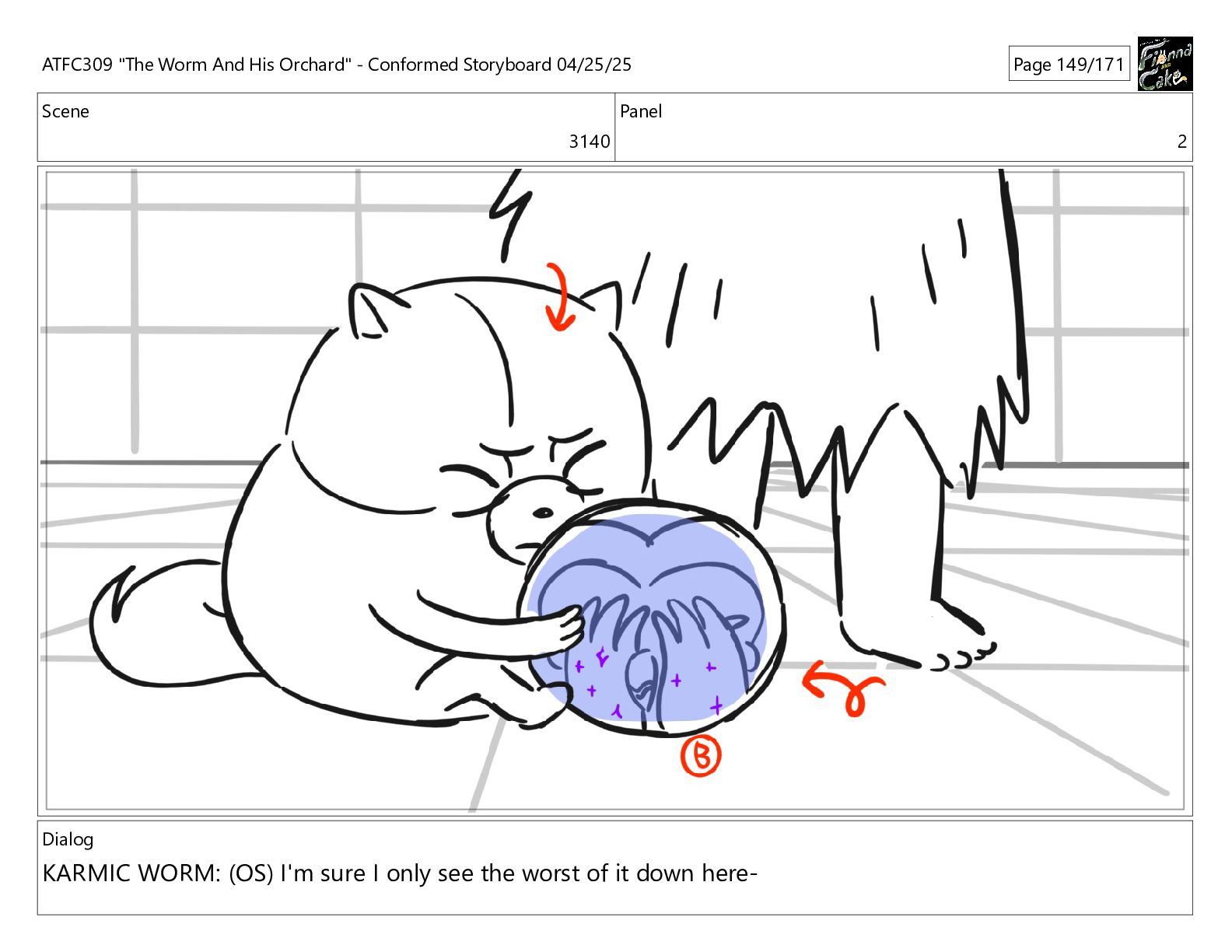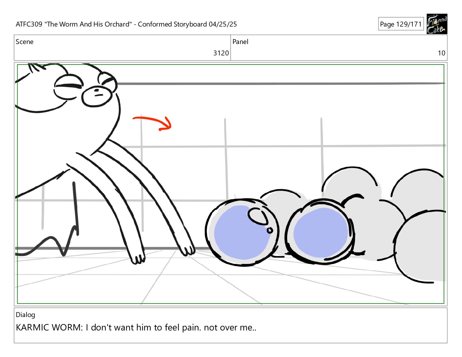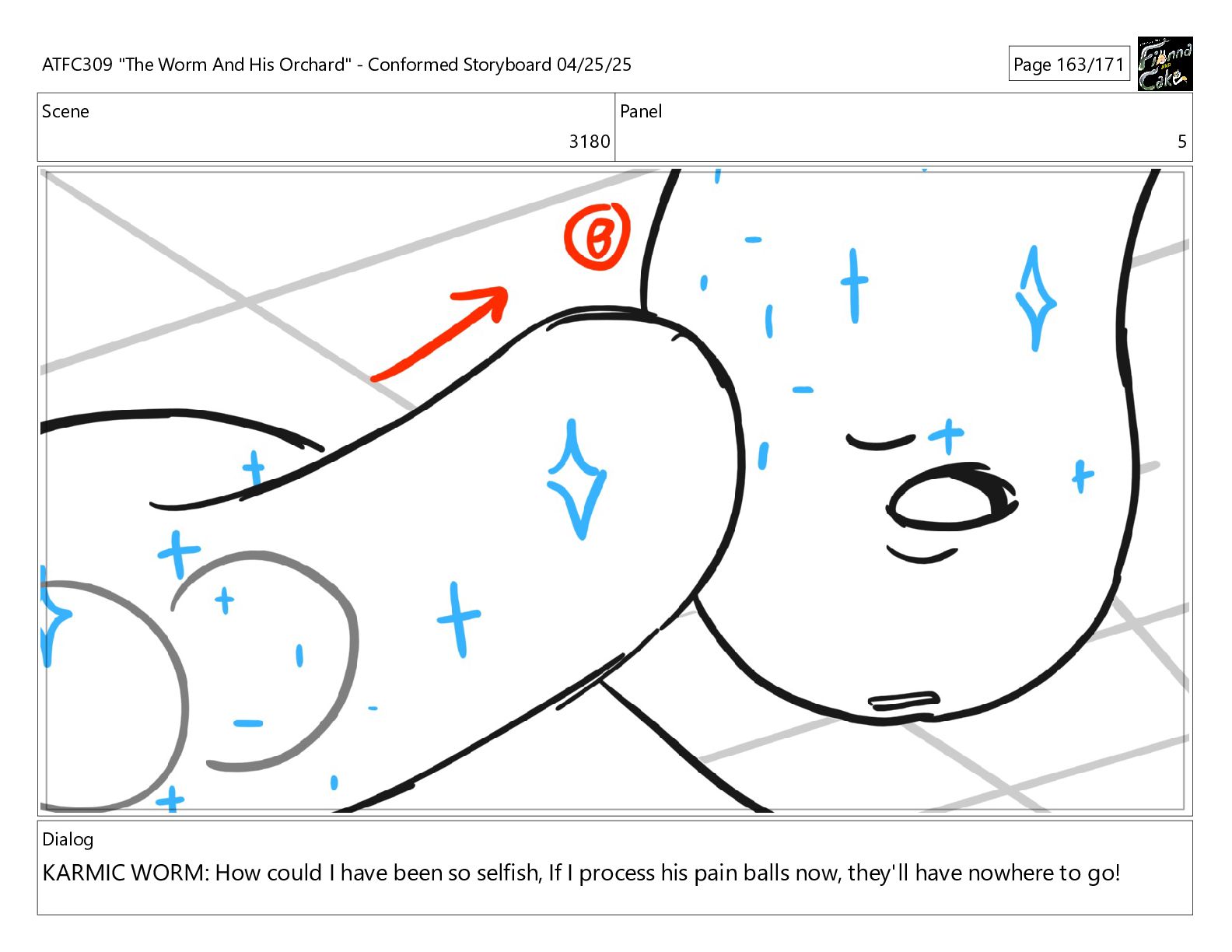have been so selfish, If I process his pain balls now, they'll have nowhere to go! ATFC309 "The Worm And His Orchard" - Conformed Storyboard 04/25/25 Page 163/171