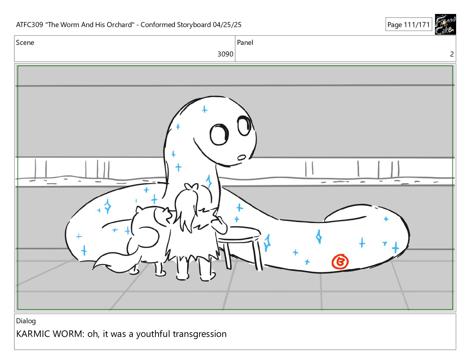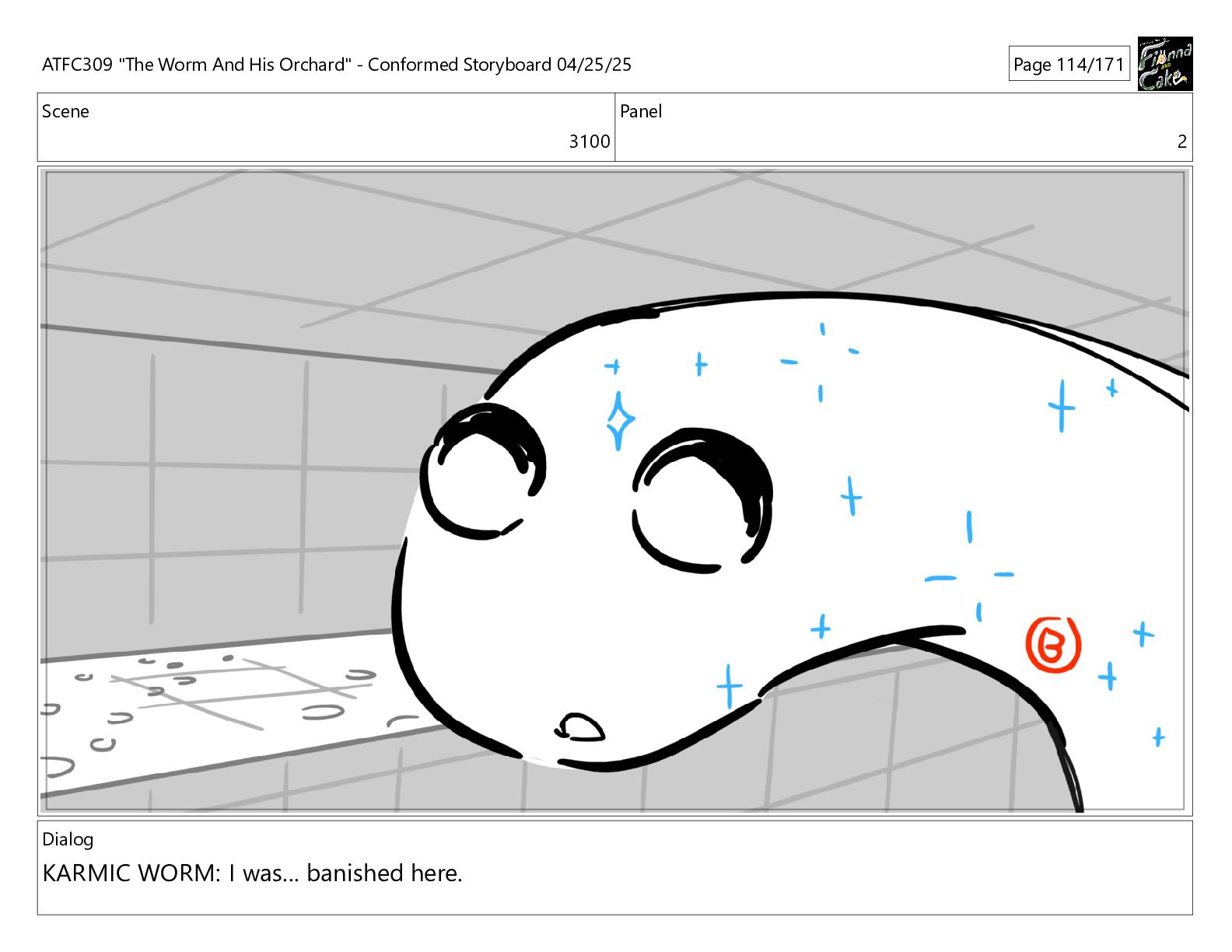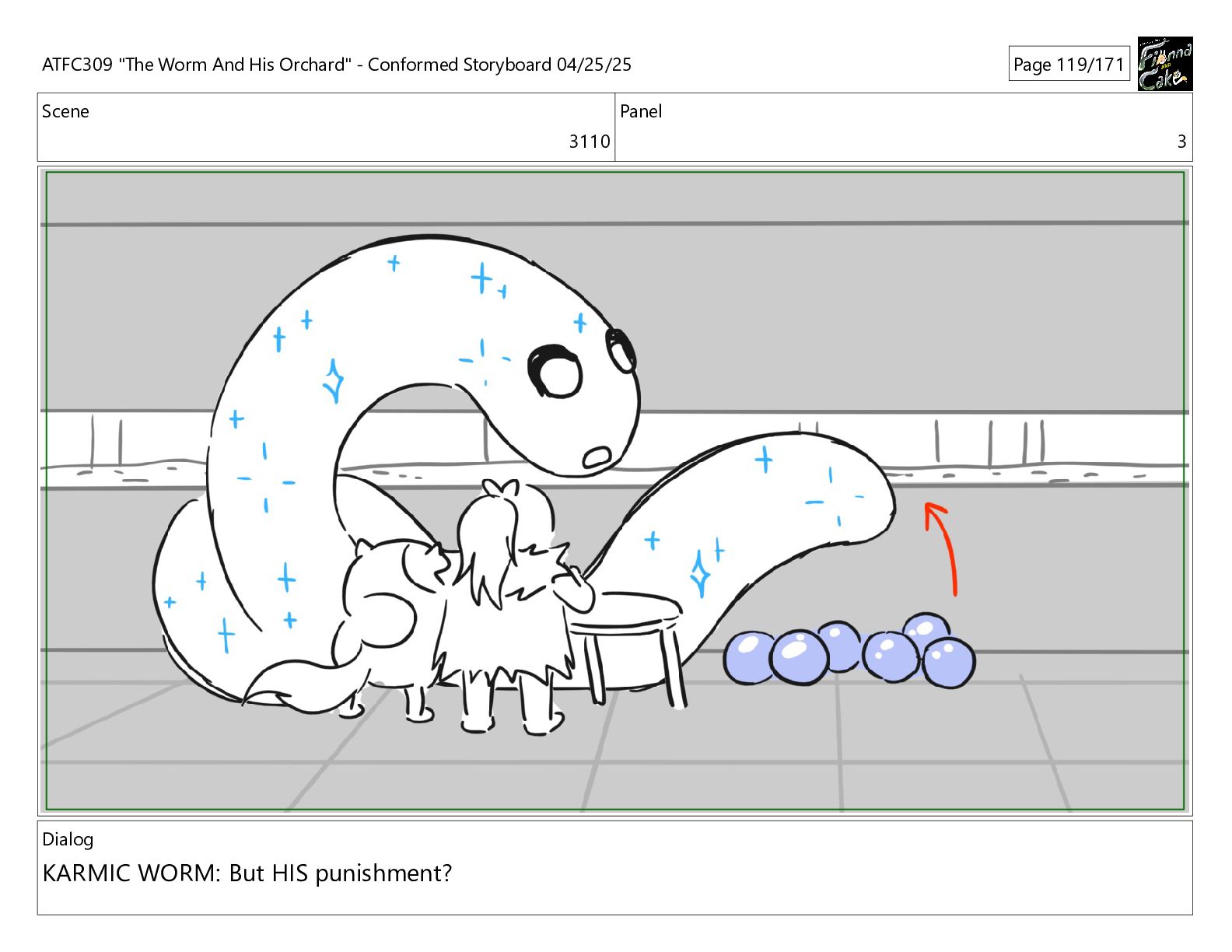 have been so selfish, If I process his pain balls now, they'll have nowhere to go! ATFC309 "The Worm And His Orchard" - Conformed Storyboard 04/25/25 Page 163/171