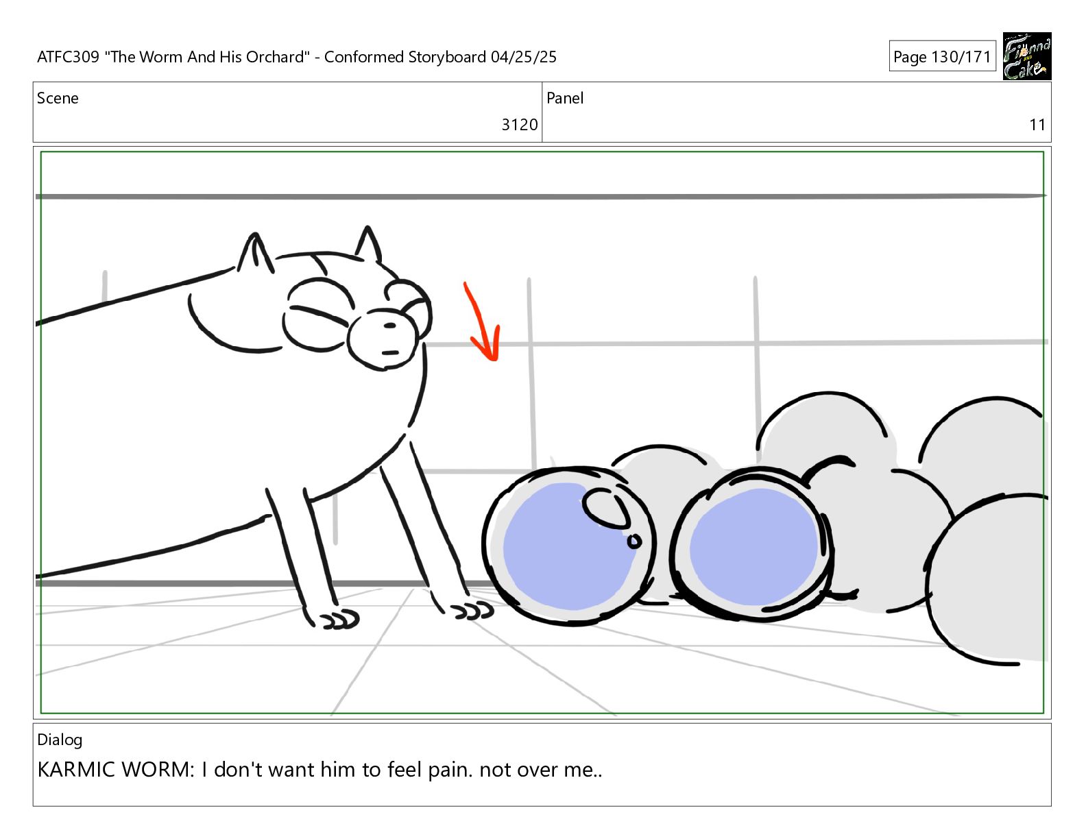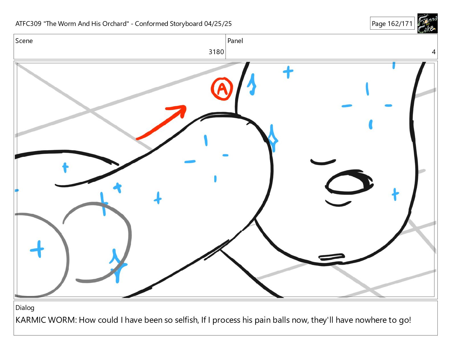 have been so selfish, If I process his pain balls now, they'll have nowhere to go! ATFC309 "The Worm And His Orchard" - Conformed Storyboard 04/25/25 Page 162/171
