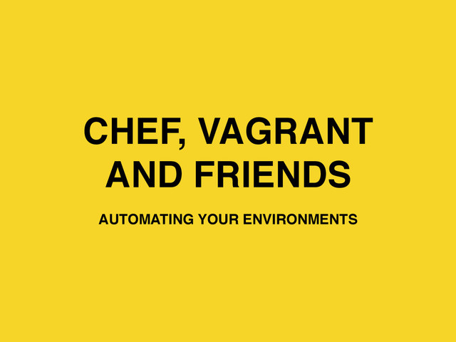 • Vagrant stands on the shoulders of giants. Machines are provisioned on top of VirtualBox, VMware, AWS, or any other provider. • Provision machines with, shell scripts, Chef, or Puppet.