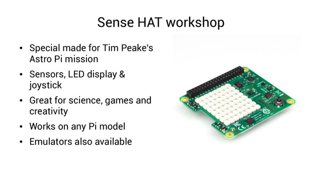 – Read sensor values – Write text to the screen – Write pixels and pixel art to the screen – Use the sensors to display different colours • What else can you do?