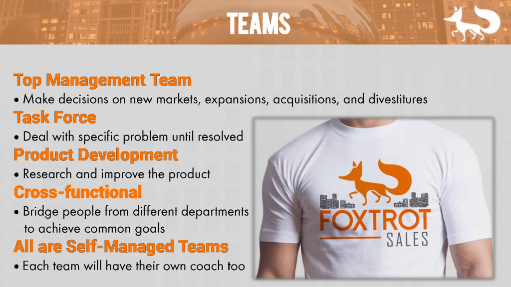 • Cross-functional • All are Self-Managed Teams •