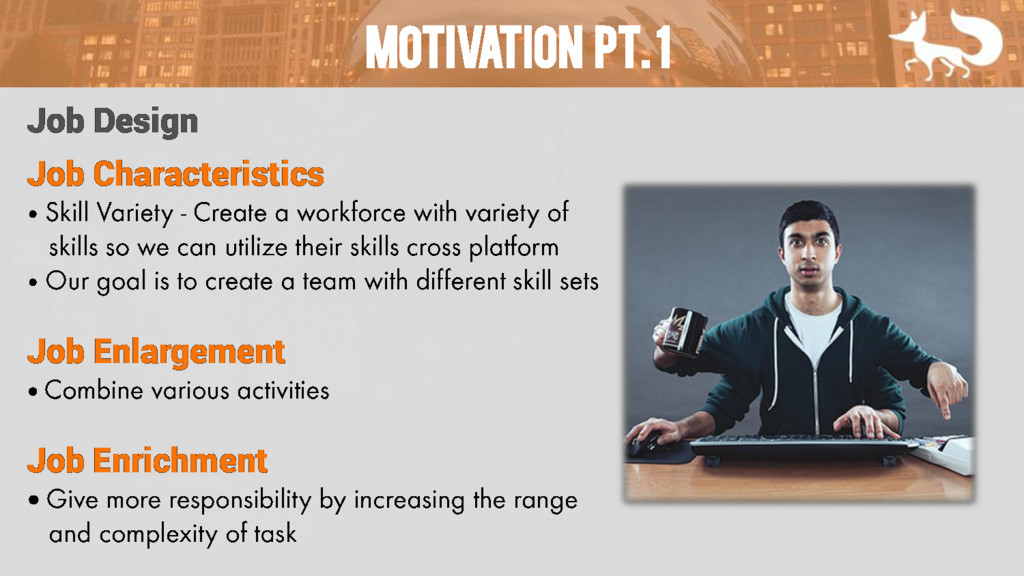 Motivation pt. 1 Job Characteristics • • Job Enlargement •