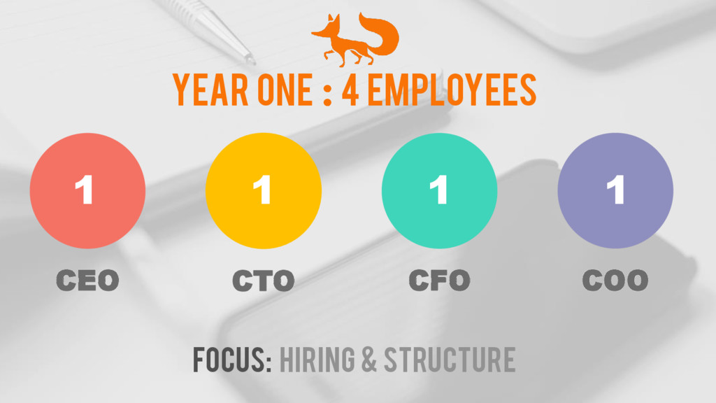 CEO YEAR ONE 4 employees CTO COO CFO 1 1