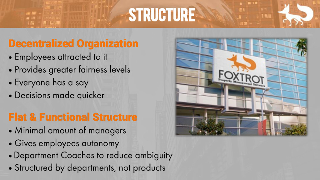 structure Decentralized Organization • • • • Flat & Functional