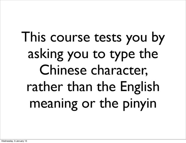 Chinese character, rather than the English meaning or the pinyin Wednesday, 9 January 13