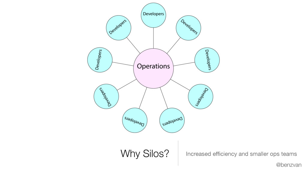 In a large enterprise, dedicated operations groups frequently serve multiple development groups, using the specialization of these groups to increase efficiency by having a smaller operations staff. These organizations use separation of duties to avoid real or apparent conflicts of interest and a higher level of security. Silos become firmly embedded because they work in these situations.