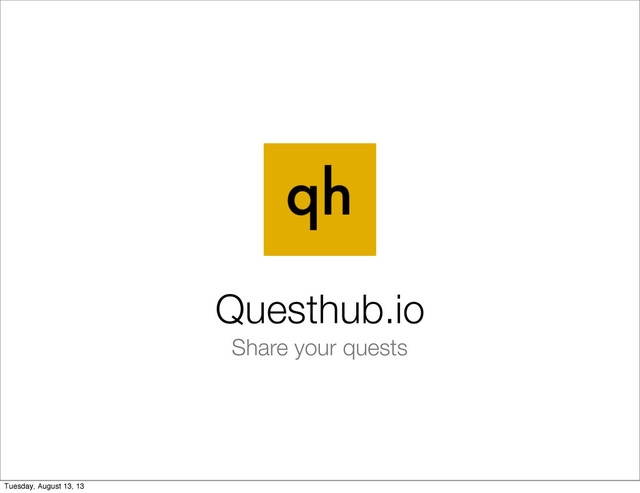 on Questhub Take stencils Subscribe to Perl realm Look through people’s quests, “like” them Become realm keeper Invite people to your quests and join others Tuesday, August 13, 13