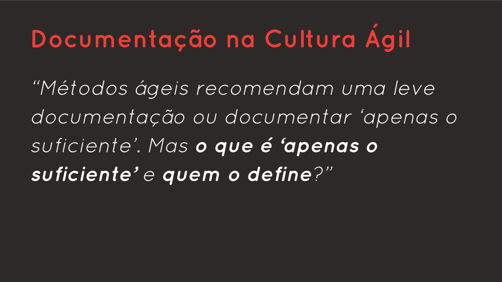 O artigo define e descreve alguns padrõe de documentação para times de desenvolvimento que adotam as metodologias ágeis em seus projetos.