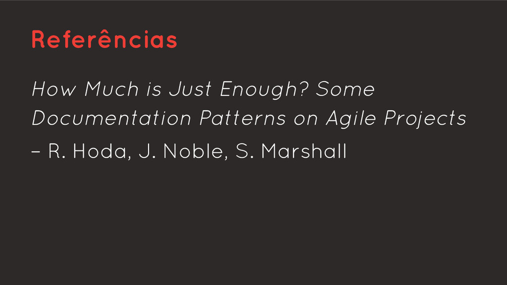 Apresentação do paper "How Much is Just Enough? Some Documentation Patterns on Agile Projects", por R. Hoda, J. Noble e S. Marshall.