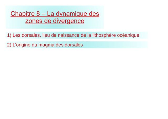 entraine la remontée de péridotite (par convection dans l’asthénosphère). Lors de sa remontée, la péridotite subit une décompression (chute de pression) mais ne perd pas sa chaleur, ce qui la place dans des conditions de fusion partielle. Cela permet la formation de liquide = un magma.