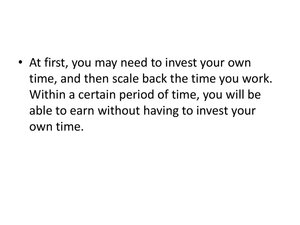 At first, you may need to invest your own time, and then scale back the time you work. Within a certain period of time, you will be able to earn without having to invest your own time.