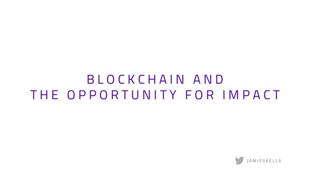 why it’s secure 3. Applications for impact BLOCKCHAIN AND THE OPPORTUNITY FOR IMPACT J A M I E S K E L L A