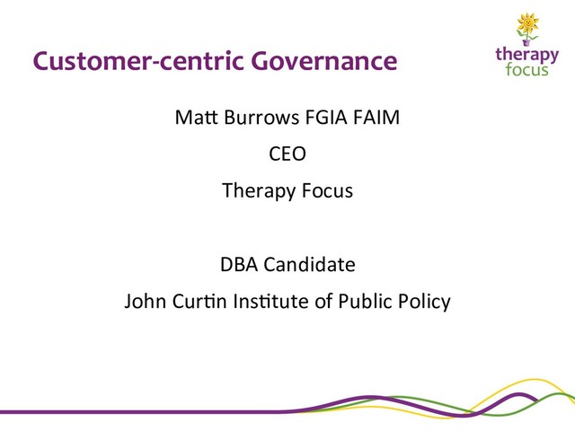 accessing informa>on at the right >me, in the right way, when needing to make the right decision. There are many reasons: • Access to informa>on – too li#le, too much, or too late • Diminished value of skillset of consumers in comparison to professional skills • Diminished value of consumers as a stereotype of social standing and/or financial means • Access to viable and dynamic markets to exercise choice and control • Resources sufficient to influence market-type decisions • The will to act as customers and exercise economic power over decisions • A tendency to revert to “packages of care” rather than individualised and tailored care • The will to genuinely engage consumers in decision-making • A framework that requires, monitors and enforces genuine engagement of consumers Literature Review