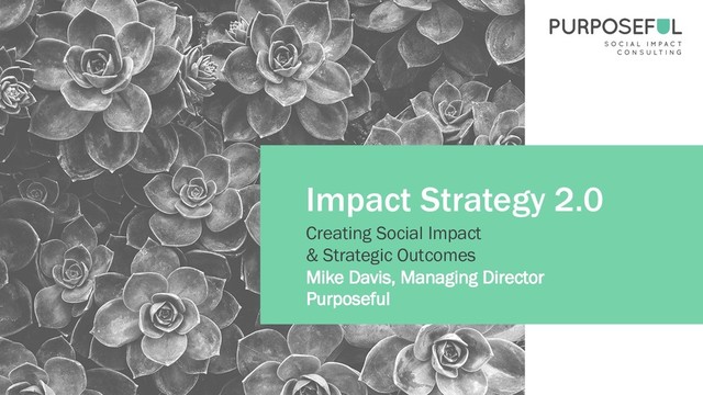 criteria • Philanthropic criteria for grants • Success in winning funding • Clear strategy & mission • Better board/exec & shared responsibility • Easier to tell story • Greater buy-in from people and staff • Better culture • Better understanding • Partners in change • Empowered • Inspired • Enabling • Partners for collaboration • Knowledge sharing • Visibility of real time impact and work • Greater support and spotlight
