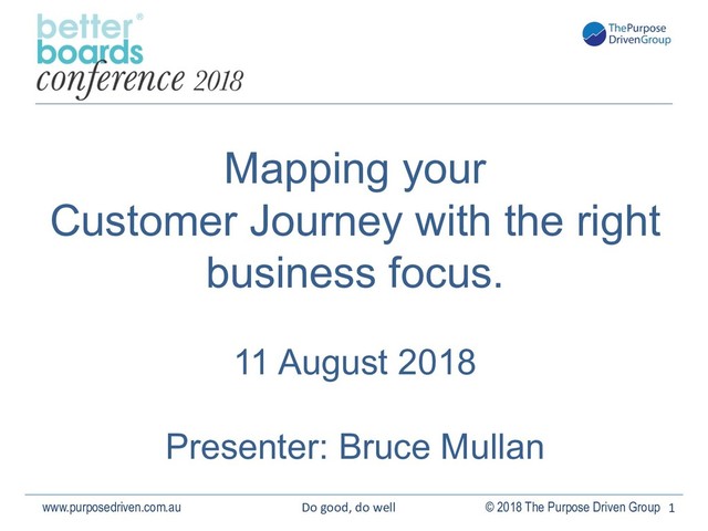 well 46 The Purpose Driven Group Use of this Document This document is intended to inform and educate. It provides general advice only. An organisation or service provider’s particular circumstances or needs have not been taken into account. This document is prepared for Better Boards use only and should not be relied upon nor used by anyone else. While all care has been taken in the preparation of this document, The Purpose Driven Group accepts no liability for errors or omissions. The information is current as of August 2018 and is subject to change.