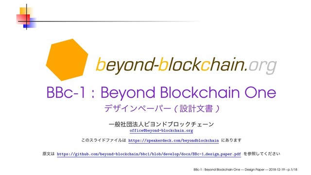 BBc-1 (Beyond Blockchain One) の設計の概観を示した文書をスライド化したものです。
