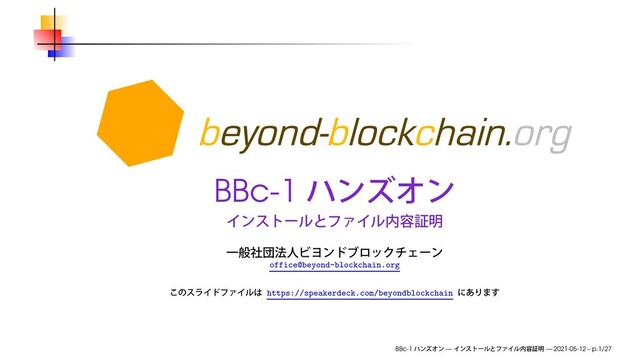 https://speakerdeck.com/beyondblockchain BBc-1 — — 2021-05-12 – p.1/27