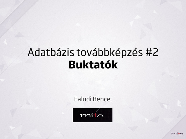 • DISTINCT ON elmarad Elfeledkezés arról, hogy az adatbázis állapota és adatai soha sem tökéletesek, és minden rendszerben van duplikáció. • Tárolt eljárások, nézetek kihagyása Kész dolgok újboli feltalálása, hiányosan. • Hibás összekapcsolások használata Mik is ezek a buktatók?