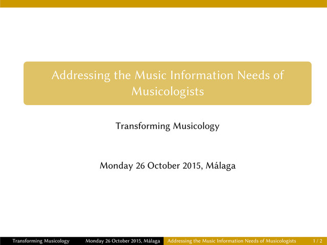 Presented/written with Richard J. Lewis, Tim Crawford, Kevin Page, David Weigl, Meinard Mueller, David Lewis, Christophe Rhodes, Justin Gagen