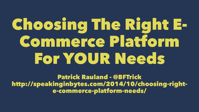 My WordCamp Dallas Fort Worth talk. http://2014.dfw.wordcamp.org/session/choosing-the-right-e-commerce-platform-for-your-needs/