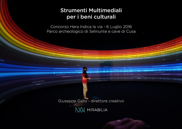 Slide dell'intervento Strumenti multimediali per i beni culturali. dal 6 Luglio 2016 al concorso di idee "Hera indica la via: soluzioni e strumenti per migliorare la visitabilità e la fruizione del parco archeologico di selinunte e cave di Cusa"