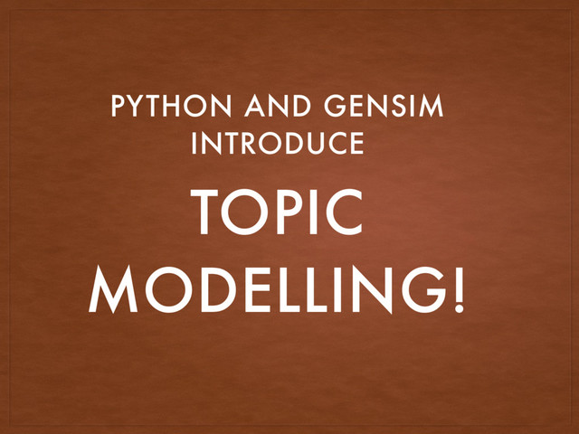 unstructured textual data • How to do it very easily with Python and Gensim • How to color words in a document • How to find the best model! • What else can we do?