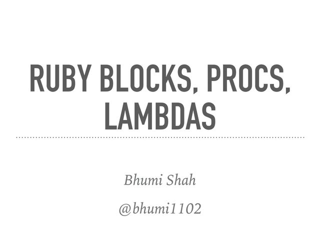 Ruby. They are not objects. ➤ But it is possible to create an object that represent a block. Depending on how we do that they are called a proc or a lambda ➤ Both procs and lambdas are instance of the same class called Proc ➤ Procs have block-like behavior and lambdas have method like behavior