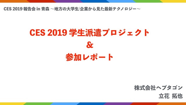 CES 2019 報告会 in 青森 〜地方の大学生/企業から見た最新テクノロジー〜で発表した資料です。