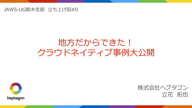 株式会社ヘプタゴン 立花 拓也 地方だからできた! クラウドネイティブ事例大公開 JAWS-UG栃木支部 立ち上げ回#0