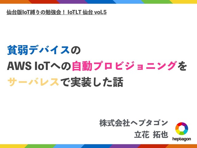 仙台版IoT縛りの勉強会! IoTLT 仙台 vol.5