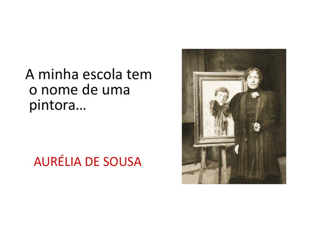 no Brasil e no Chile, Aurélia de Sousa nasceu em Valparaíso, filha de António Martins de Sousa e de Olinda Peres. Era a quarta de sete filhos do casal. Mudou-se para o Porto, juntamente com os pais, com apenas três anos, em 1869. Passou a habitar a Quinta da China, às portas da cidade e sobre o rio Douro, comprada por seu pai, que veio a falecer em 1874 quando Aurélia tinha apenas oito anos. Aos dezasseis anos, começou a ter lições de desenho e pintura com António da Costa Lima e pintou o seu primeiro autorretrato. Em 1893, entrou para a Academia de Belas- Artes do Porto, onde foi aluna de João Marques de Oliveira, o qual muito influenciou a sua obra. Em 1898, Aurélia mudou-se para Paris onde frequentou, na Academia Julian, os cursos de Jean-Paul Laurens e de Jean-Joseph Benjamin-Constant. Realizou as primeiras exposições e, durante os três anos seguintes, viajou e visitou os museus de Bruxelas, Antuérpia, Berlim, Roma, Florença, Veneza, Madrid e Sevilha. Tendo regressado a Portugal em 1901, desenvolveu intensa atividade como ilustradora e participou regularmente na vida artística portuense, expondo na Sociedade de Belas-Artes do Porto, na Galeria da Misericórdia e, anualmente, na Sociedade Nacional de Belas-Artes, em Lisboa. Passou a última fase de sua vida na Quinta da China, onde faleceu em 1922, com cinquenta e cinco anos. A sua obra abrange vários temas: - o retrato ( onde se destacam os autorretratos, numa procura de si própria); - as cenas do quotidiano e de interiores; - a paisagem ( a partir da Quinta da China o seu olhar espraiava-se pelo rio Douro e pelo lugar do Areinho que pintou com frequência); - a natureza-morta; - e a pintura histórica ligada à religião e à mitologia.