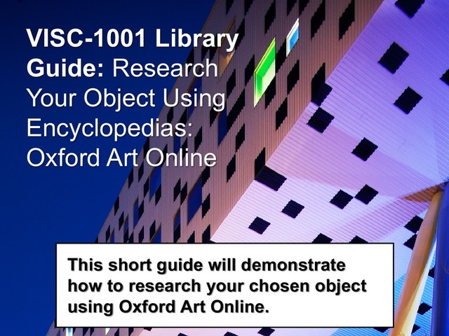 VISC-1001 Library Guide: Research Your Object Using Encyclopedias: Oxford Art