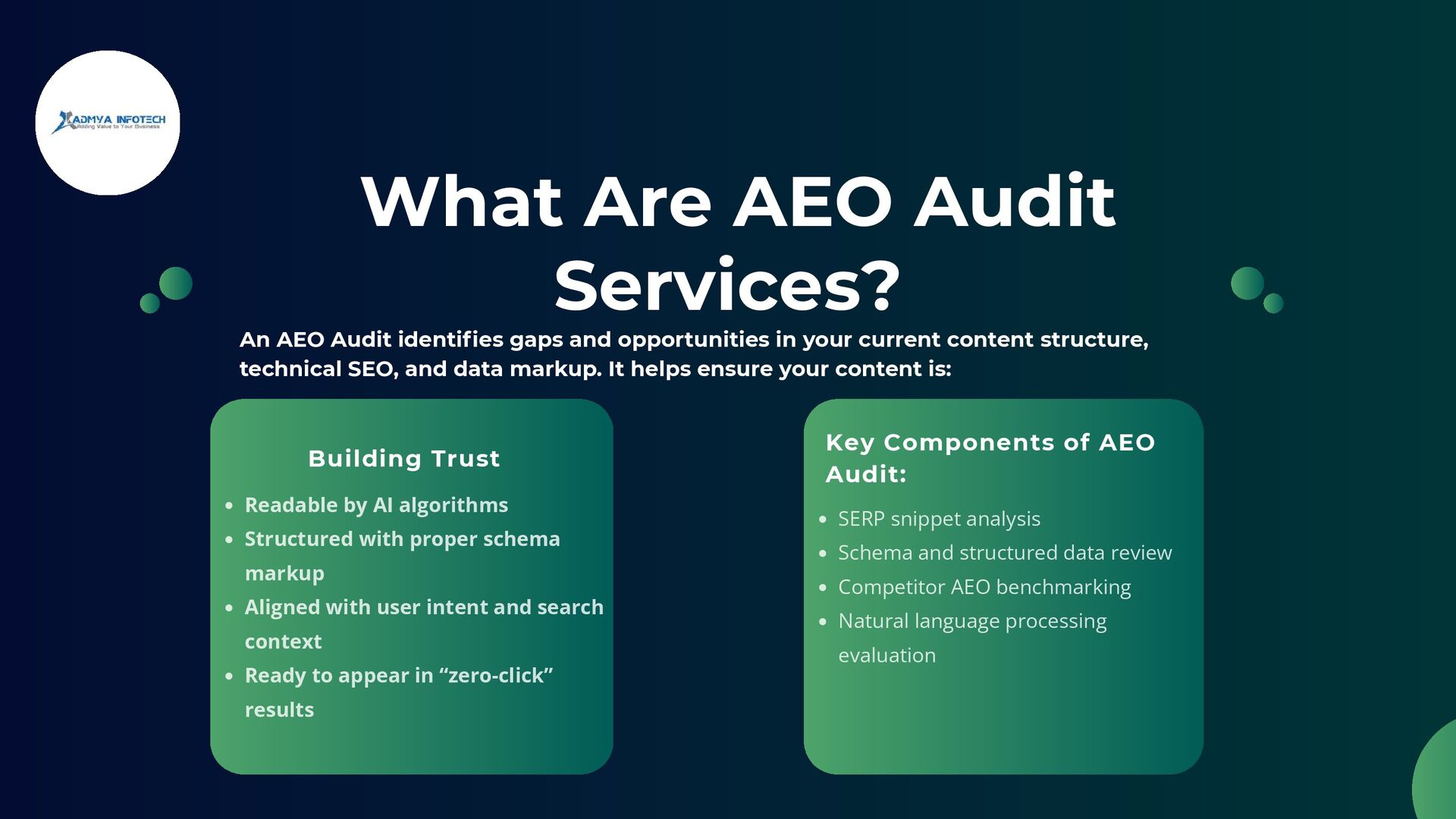 Find out how to become the top answer in AI-generated search results. This comprehensive guide covers AEO Audit Services and AI SEO strategies that improve your digital discoverability across platforms.
