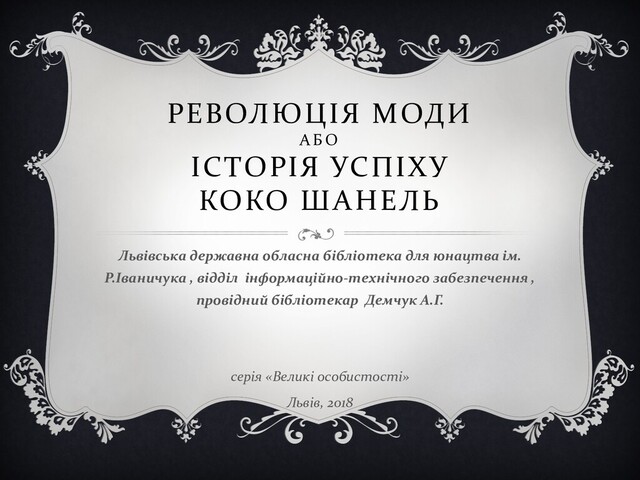 державна обласна бібліотека для юнацтва ім. Р.Іваничука , відділ інформаційно-технічного забезпечення , провідний бібліотекар Демчук А.Г. серія «Великі особистості» Львів, 2018
