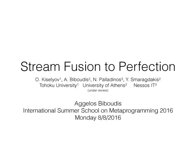 Y. Smaragdakis2 Tohoku University1 University of Athens2 Nessos IT3 (under review) Aggelos Biboudis International Summer School on Metaprogramming 2016 Monday 8/8/2016