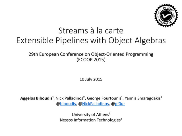This is the slide deck of our talk at ECOOP15 about extensible pipelines with Object Algebras.