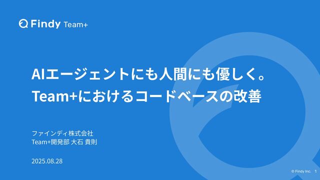 本発表は、AIエージェントと人間が共創する時代に向け、ファインディの「Findy Team+」で実践しているコードベースの改善事例を紹介するものです。