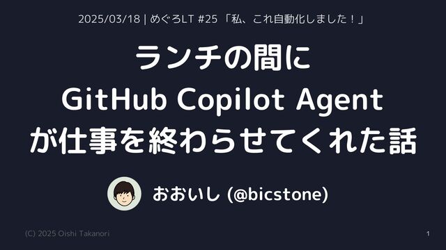 1. ランチの間に GitHub Copilot Agent が仕事を終わらせてくれた話 (C) 2025 Oishi Takanori おおいし
