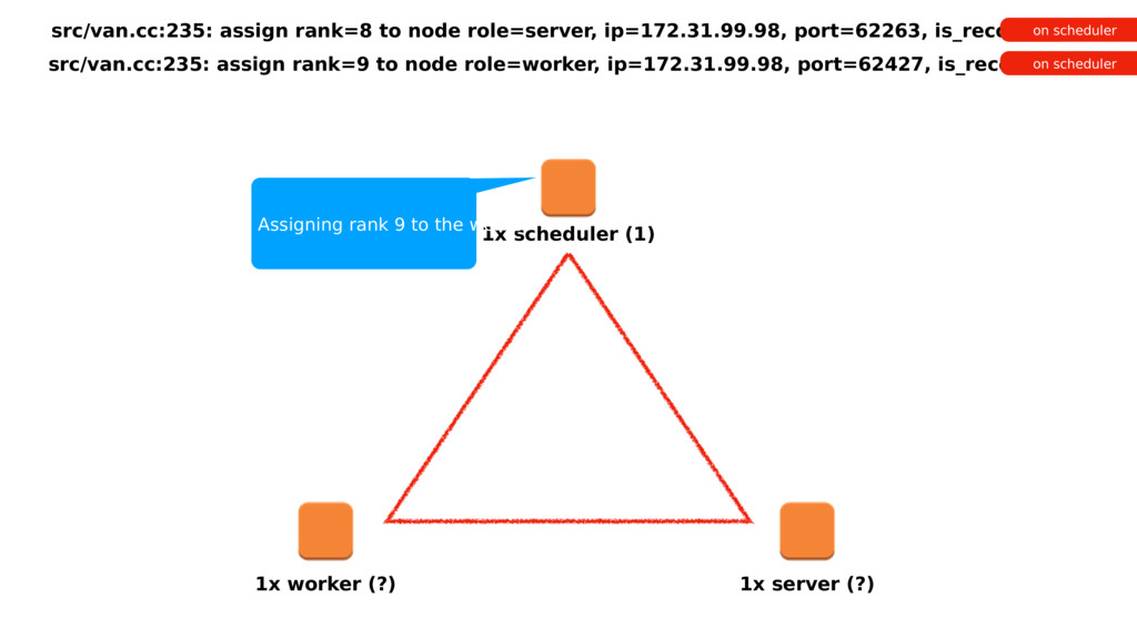 rank 9 to the worker src/van.cc:235: assign rank=8 to node role=server, ip=172.31.99.98, port=62263, is_recovery=0 src/van.cc:235: assign rank=9 to node role=worker, ip=172.31.99.98, port=62427, is_recovery=0 on scheduler on scheduler