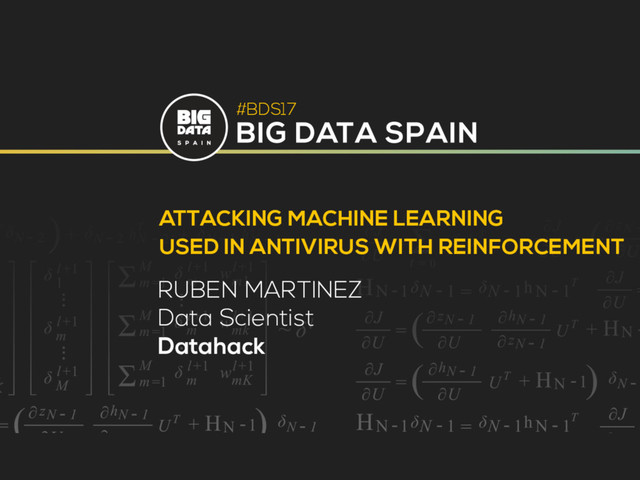 Attacking Machine Learning used in AntiVirus with Reinforcement by Rubén Martínez at Big Data Spain 2017