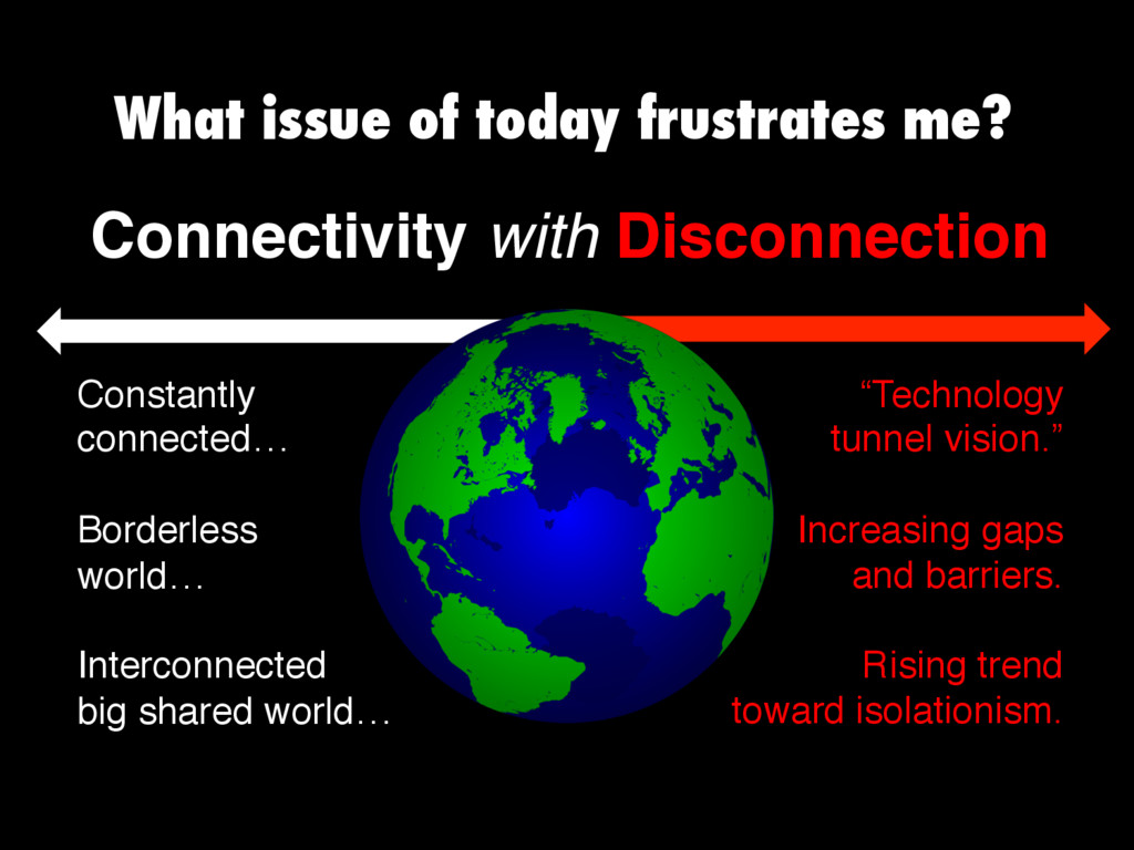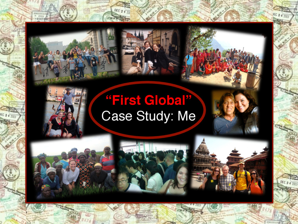 Americans born between 1979 and 1994: ü 67% have passports. ü 35% say they expect to live and work in a foreign capital at some point in their lives. ü Over 60% believe being fluent in a foreign language is somewhat important. ü They are as likely to identify as a “citizen of planet Earth” as much as “citizen of the United States.” ü They are less likely than other generations to believe other cultures are inferior to America. ü They are most supportive of multilateralism in foreign policy. ü 71% say it is important to do something that changes the world. ü 85% seek to achieve “useful and beneficial life experience” from their work. ü 79% “want to work for employers who care about how they impact/contribute to society.”* ü 62% say it’s very or somewhat important to contribute time and money to an international charity. Research from The First Globals by John Zogby and Joan Snyder Kuhl -- *Research cited in The First Globals, originally from CONE, Inc. Who are the FIRST GLOBALS? First Globals are more globally connected than ever before. First Globals want to be part of making the world a better place.