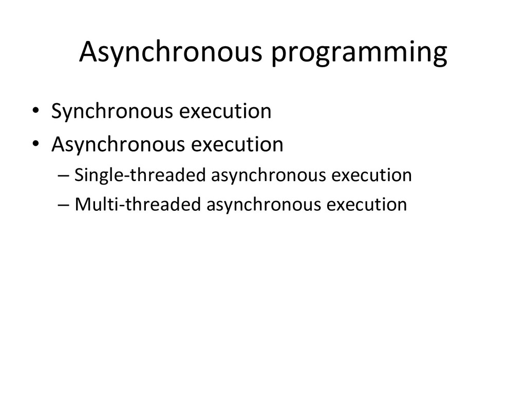 The presentation show the basic introductory concept of asynchronous programming, a programming model that allow application scalability and high performance across distributed systems.