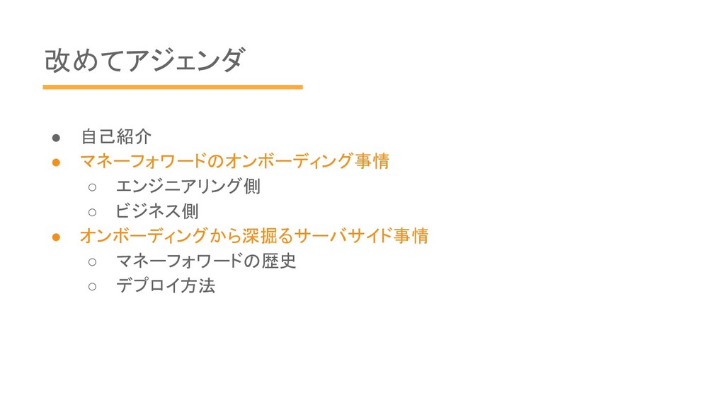 改めてアジェンダ • 自己紹介 • マネーフォワードのオンボーディング事情 ◦ エンジニアリング側 ◦ ビジネス側 •