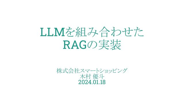 LLMを組み合わせた RAGの実装 株式会社スマートショッピング 木村 優斗 2024.01.18
