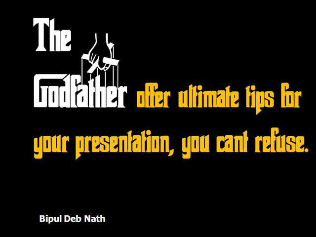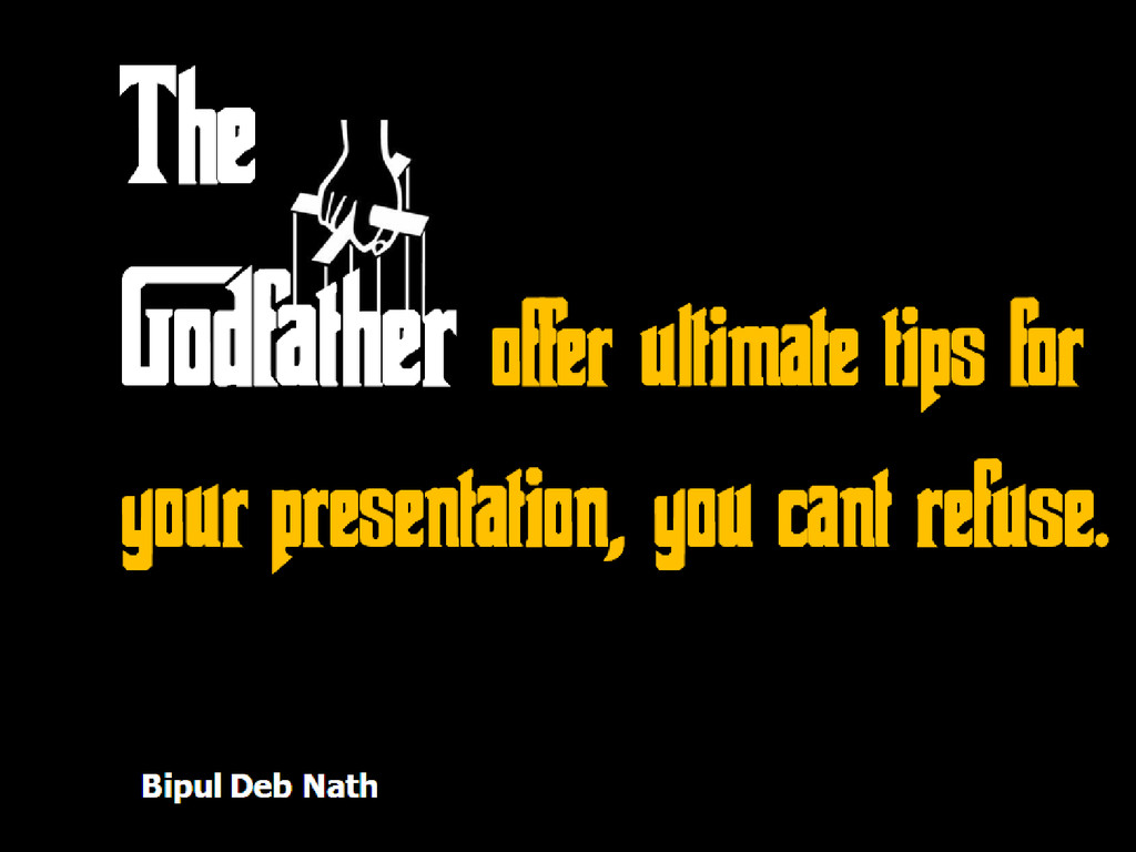 The Godfather is widely regarded as one of the greatest films in world. I tried shared some tips about presentations using scenes from the film.